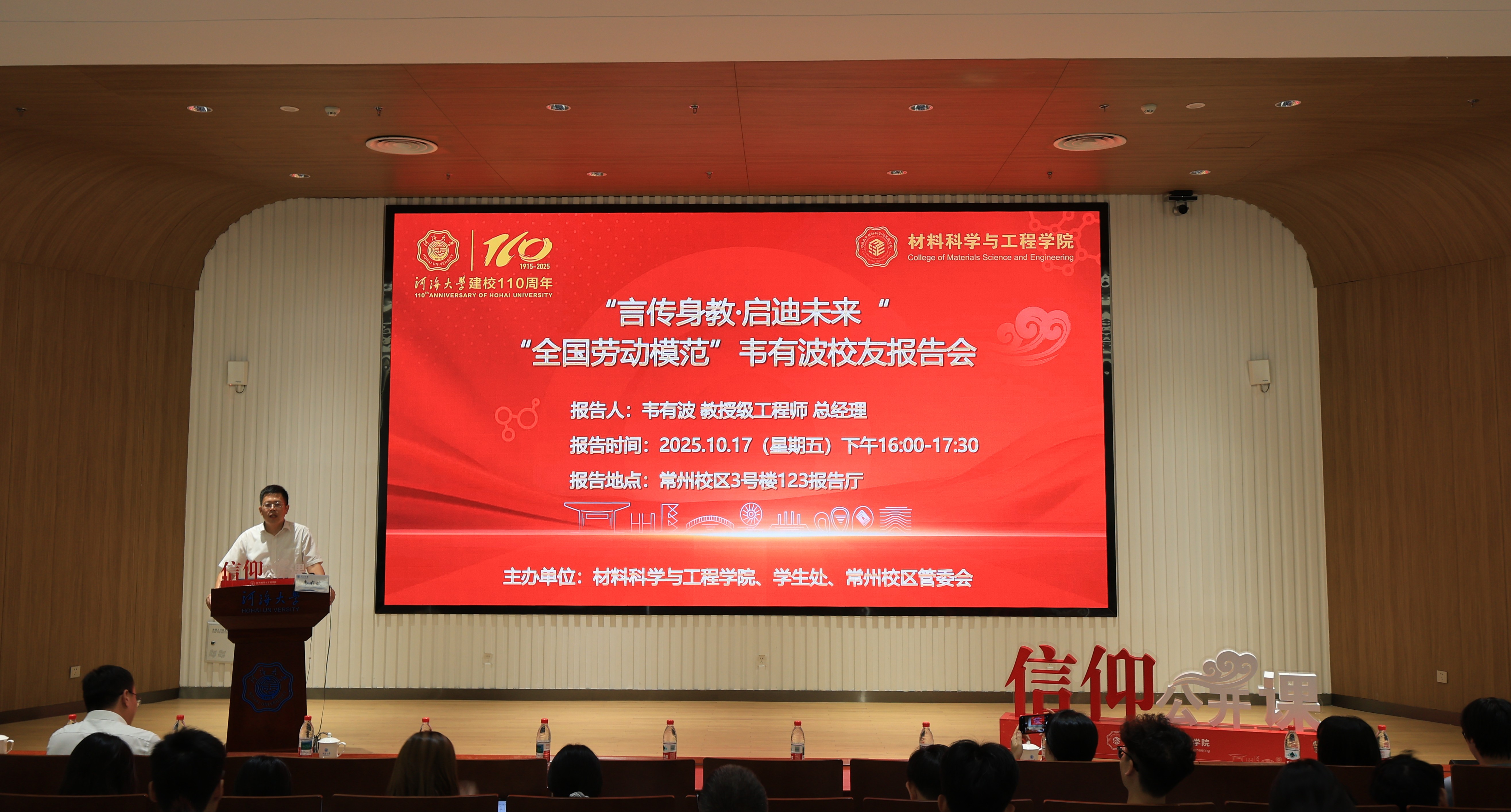 劳模赋能、榜样引路,“全国劳动模范”韦有波校友用近20年的一线实践证明,努力奋斗能创造不凡价值,这将助力同学们在专业领域找准奋斗坐标,成长为兼具专业素养与责任担当的新时代人才,为国家工程建设与科技创新事业注入青春力量!本次校友报告会暨线上彩票平台 信仰公开课,由线上彩票平台 、学生处、常州校区管委会主办,300余名校内师生参加。
