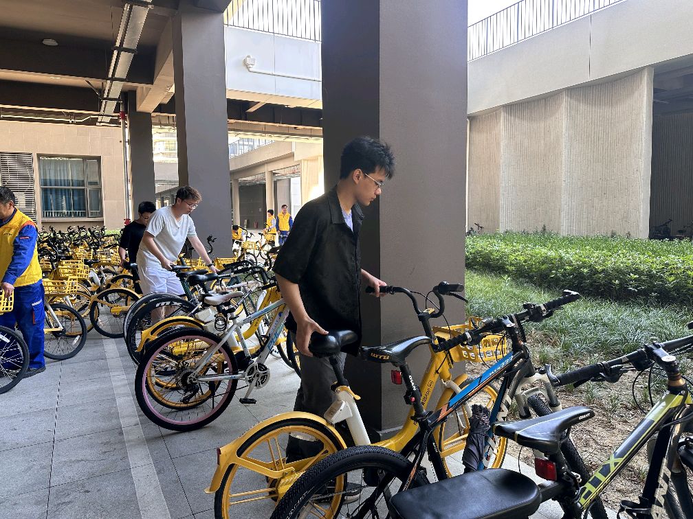 活动当天,9名志愿者准时抵达图书馆南门,与负责人汇合。在与丹田物业工作人员深入沟通并完成岗前培训后,大家迅速进入工作状态,奔赴各自岗位。志愿者们与物业人员携手并肩,有序开展校园共享单车规范摆放工作,仔细清理车筐杂物,弯腰捡拾散落在校园角落的白色垃圾。他们忙碌的身影穿梭在校园的道路旁、树荫下,成为一道温暖而亮丽的风景线。